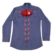 38 (M) Blue Charro Shirt Camisa Charra Diseño Bordada