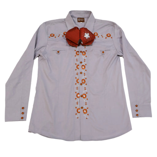 View full details38 (M) Heather Gris Flor Camisa Charra Diseño Bordada