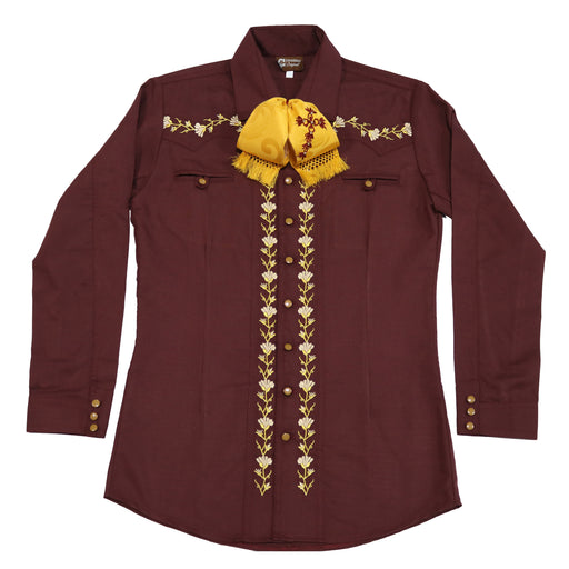 View full detailsFlor Charro Vino Camisa Charra Diseño Estampado Charreria