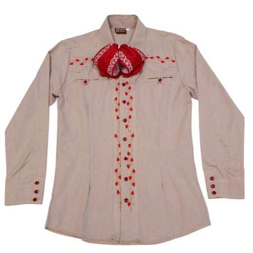 View full details40 (L) Beige Charro Camisa Charra Diseño Bordada