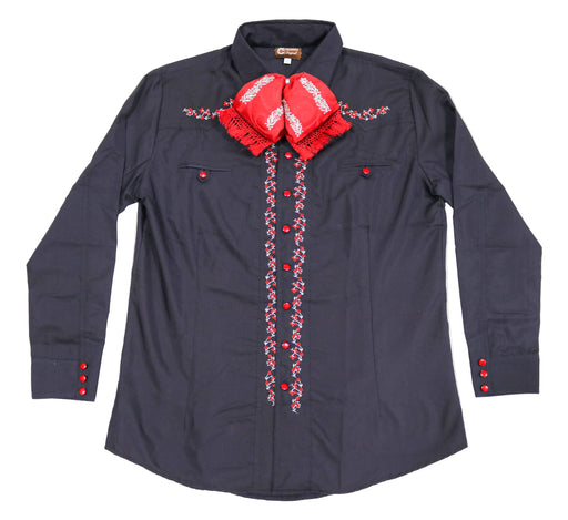View full details46 (3XL) Black Camisa Charra Diseño Bordada