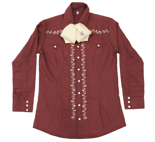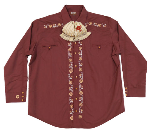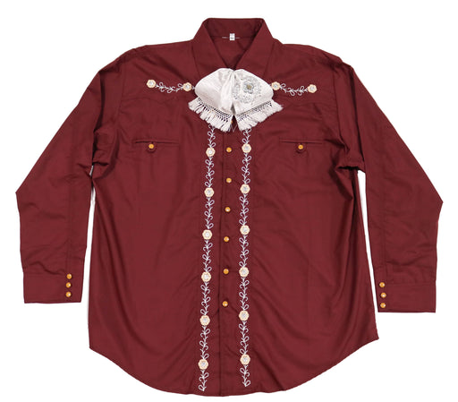 View full details46 (3XL) Maroon Vino Flor Camisa Charra Diseño Bordada