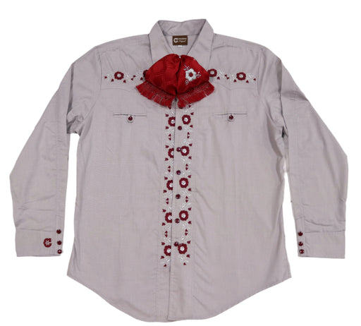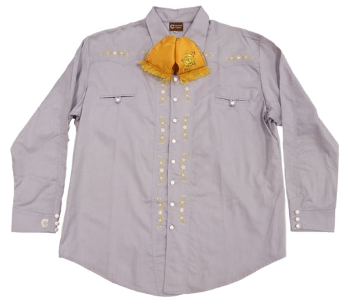 View full details46 (3XL) Camisa Gris Oro Diseño Bordada Charra