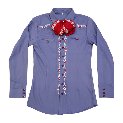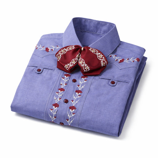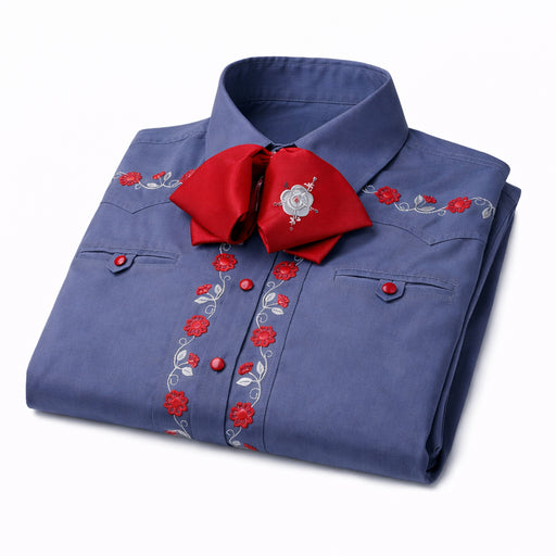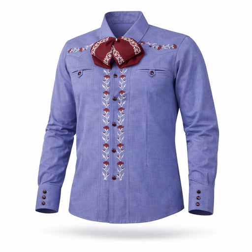 View full details46 (3XL) Blue Camisa Charra Diseño Bordada
