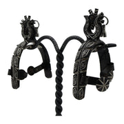 Quality Charro Spurs features unique design over spur bands and unique rowel. Adult sized.