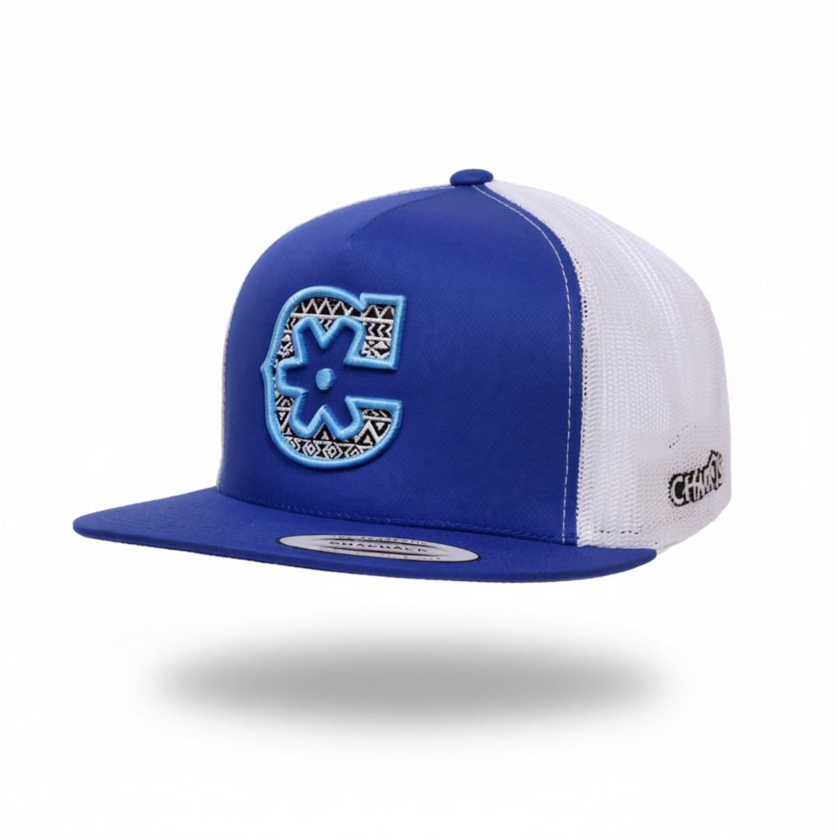 Features a high-profile structured design with a firm buckram front and breathable mesh back. The adjustable snapback ensures a comfortable, universal fit.