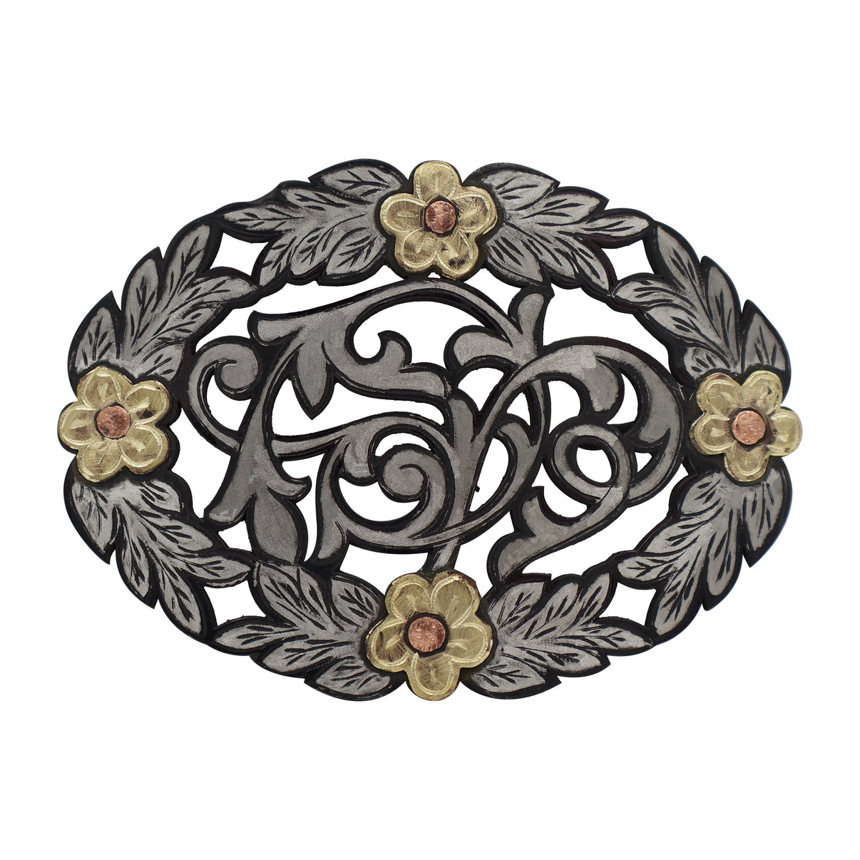 Hermosa hebilla hecha a mano, De acero inoxidable con detalle tradicional charra. La hebilla se ajusta hasta 2" de ancho.